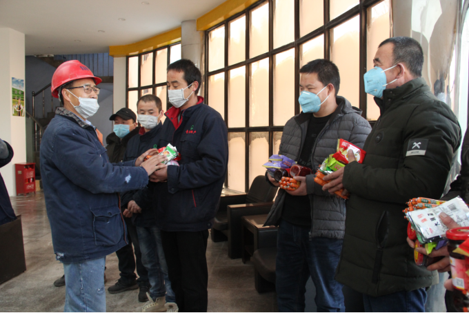 "下班后,大家本該正常回家,在疫情防控封村封路的情況下,大家仍然堅守在工作崗位、吃住在公司,為你們的愛崗敬業精神點贊,對默默支持你們工作的家人也表示感謝。"慰問現場氣氛溫馨、熱烈。王兆明同志的話語表達了對全體人員工作的肯定。同時,也體現了公司黨委、公司工會始終將職工的"冷暖"放在心上、落實到行動中,促進了公司和諧穩定。王兆明同志要求大家,在疫情防控中,做好個人防護、養成良好的衛生習慣,認真履職擔當、做好本崗位的安全生產工作,為打贏疫情防控阻擊戰做出新貢獻。全體職工表示,將克服困難,一如既往地做好本職工作,用實際行動感謝組織的關心和關愛。